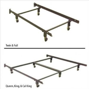 Support your mattress with a heavy duty steel bed frames engineered to support today's thicker, heavier mattresses. A 1-1/2" center support bar offers extra support through the middle of the bed and fulfills mattress manufacturers' support warranty requirements. Four 2-1/2" extra-wide rug rollers (two locking rollers). One center support glides allow mobitily when desired. Headboard brackets will accomodate virtually any headboard configuration. Two cross arm support legs contribute additional support. Finished with a durable and stylish gunmetal black matte powder coating. Features a one-year manufacturer's warranty against defects and workmanship. Easy to assemble in under ten minutes and no additional tools are required. Side rail angle iron steel is 1-1/2" x 1-1/2" and cross arm angle iron steel measures 1-1/4" x 1-1/4". Fits the following mattress sizes: Queen, Full XL, Full, Twin XL, Twin.